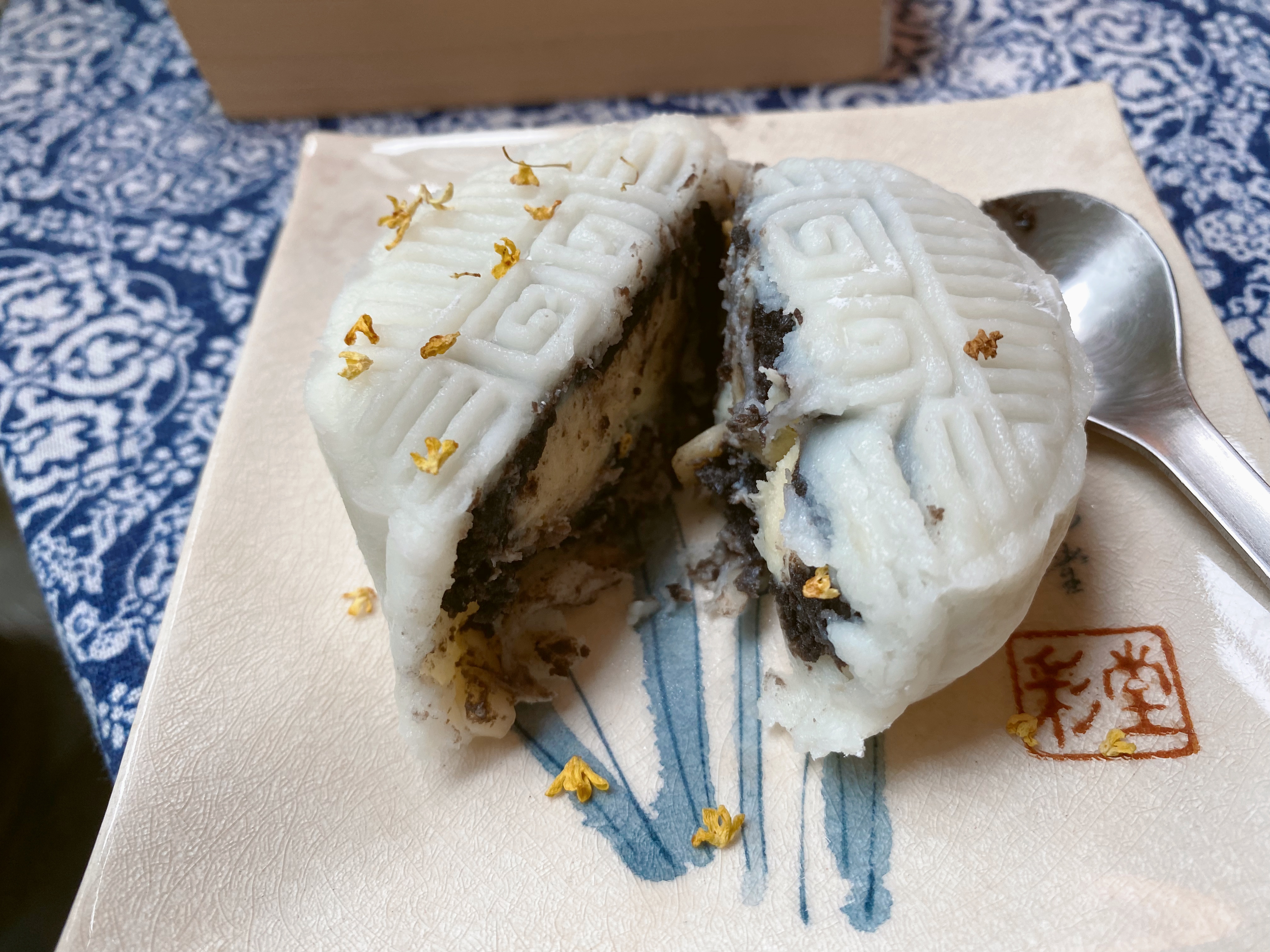 หอมงาดำมาก อีกทั้งยังสัมผัสได้ถึง texture อัลมอนด์นิด ๆ แป้งโมจิก็นุ่ม น่าเสียดายที่เป็นขนมที่ทางร้านทำแค่ช่วงเทศกาลไหว้พระจันทร์เท่านั้น ไม่ใช่เมนูประจำ